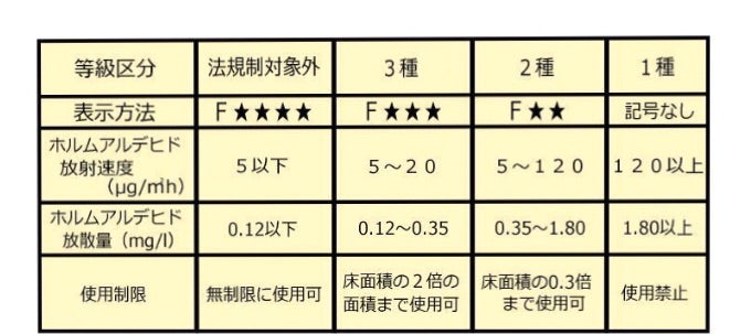 ホルムアルデヒドの放散量に応じて☆の数が分けられています。